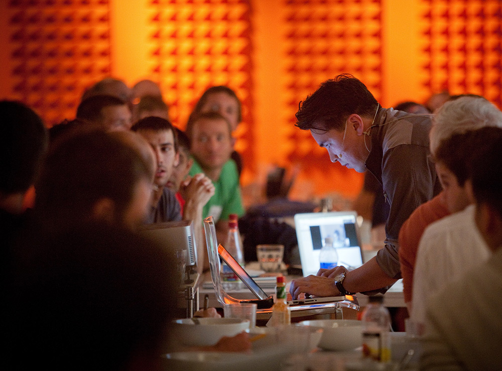 项目为期三个月,强度很高,主要围绕如何打造产品。Graham 和他的合伙人,会联合诸如 Paul Buchheit(Gmail 之父)之类经验丰富的产品人,为创业者提供咨询。Graham 通常会在 Pioneer Way 散步的时候开放他的咨询时间,而创始人就像苏格拉底的追随者一样一路跟着他,认真记下他说的每一个字。每周二晚是例行聚餐,菜式通常是炖菜之类的高碳水化物的食物。之后一位科技界大佬会发表讲话,可能是 Marissa Mayer、马克 · 扎克伯格或者其他人。