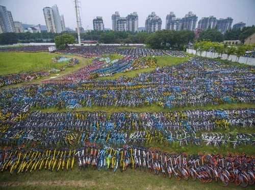 在不到3年的时间里,创业者们蜂拥而上,45家企业上阵搏杀,2000万辆单车散落在大街小巷!