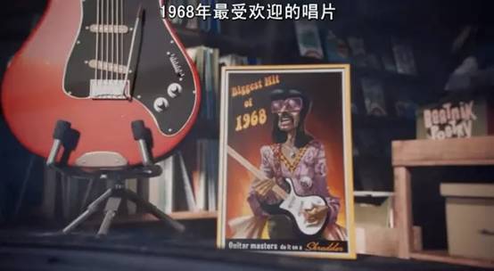 电影中,斯图尔特在唱片店的橱窗里看上了一把电吉他,旁边摆的唱片上就是Jimi Hendrix,他的这张《Biggest Hit of 1968》,是1968年最受欢迎的唱片之一。