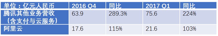Azure的增速是AWS的两倍,这在美国相对成熟的市场显得十分难得。在国内,腾讯云和阿里云共享着一个相对处于启蒙期的市场,腾讯云的增速同样压过阿里云一头。