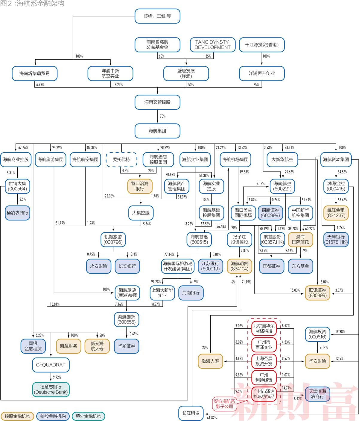 2015年,海南银行筹建,海航系旗下海航国际旅游岛开发建设(集团)有限公司参股,占股9%。同年11月,疑似海航系影子公司的广州市泽达棉麻纺织品有限公司,通过受让及增资扩股方式,获得天津滨海农商行8.92%股权。2016年3月,渤海金控通过全资子公司香港渤海租赁资产管理有限公司,认购天津银行(01578.HK)发行的H股股票,占比1.76%。