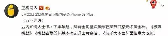 目前, 浙江卫视《挑战者联盟3》于周六晚10点播出;江苏卫视《来吧兄弟》选择周五晚10点档;东方卫视《极限挑战3》则从往季的周日晚9点挪至10点。现如今全明星真人秀众多,包括明星的高片酬,已经成为了行业不堪重负的部分。或许广电总局是希望通过这样的举措,让这一类节目“降降温”吧。