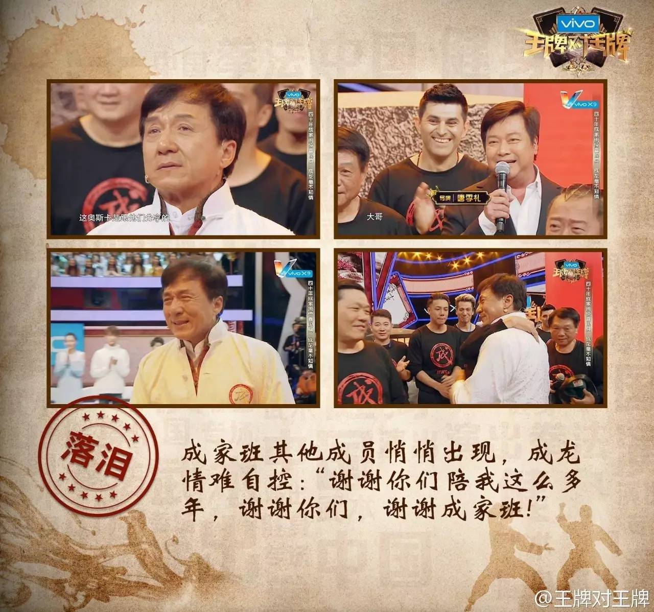 增加素人元素,不是在综艺节目中生硬地安插一两位普通人,冷凇表示,“是制作人有一种顶层设计的大智慧。比如,《王牌对王牌》去年的娱乐定位曾经存在不小风险,今年升级成了IP致敬聚首系列,感人走心,效果非常好。节目组花费心力找到了七八十年代成家班的20位兄弟,他们是老电影《A计划》的特技演员。当年出生入死的兄弟聚首在一起让成龙大哥特别惊喜,这批人现在有的在摆小摊,在当出租车司机,都是底层人,大家都没有联系方式,但节目组能把他们找回来。”这个片段也在朋友圈多次刷屏。
