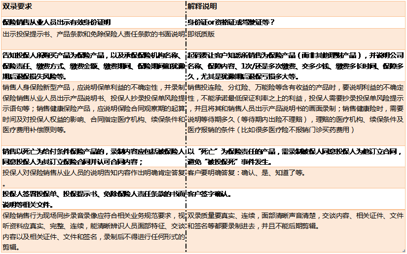 那么双录要求有哪些呢?界面新闻根据保监会文件整理如下,并作出解释说明: