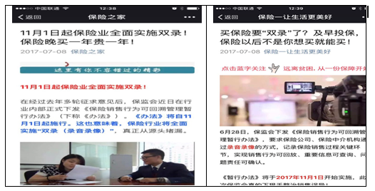 上述内容即是本次《办法》发布之后的营销文案,将“双录”与“保险晚买贵”和“不是想买就能买”胡乱结合,本身就是误导营销。实际上,不管双录与否,保险价格都与投保人年龄挂钩,基本是每五岁贵一个价位,比如医疗险重疾险等“36-40岁”投保比“30-35岁”投保每年贵一些。而投保人身体状况和是否拒保挂钩,不管双录与否,身体健康太差都有拒保风险。