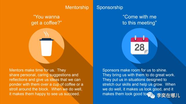 在麦府,导师有两种:mentor和sponsor,我刚听说的时候一直没搞清楚这两者的区别,直到某天看到这张海报。