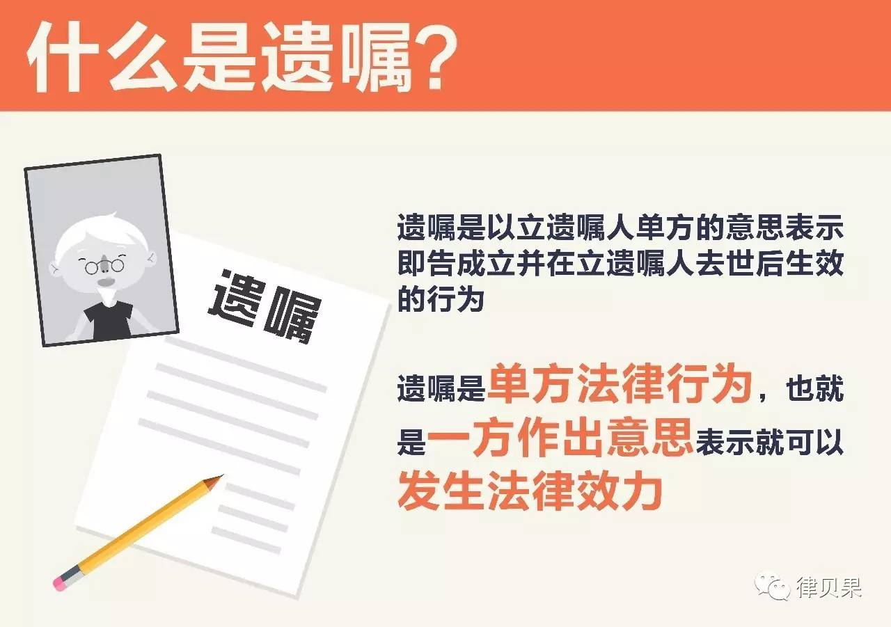 遗嘱是以立遗嘱人单方的意思表示即告成立并在立遗嘱人去世后生效的行为。遗嘱是单方法律行为,也就是一方作出意思表示就可以发生法律效力。