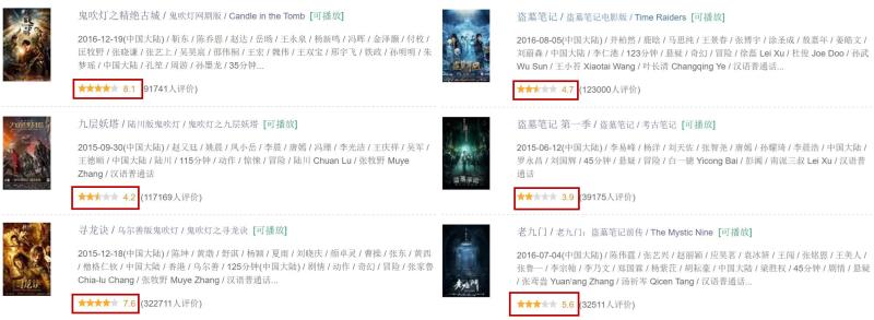 (豆瓣评分)【左】《鬼吹灯》系列 【右】《盗墓笔记》系列