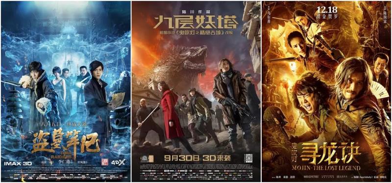 从改编“战绩”来看,《盗墓笔记》虽然在时间上抢占先机,但并不妨碍《鬼吹灯》后来者居上,在2016年之前(包括2016年),《鬼吹灯》已拍摄一部网剧两部电影,而《盗墓笔记》算上前传《老九门》也已拍摄了两部网剧一部电影,但从观众反响来看,《鬼吹灯》系列尽管有一部因改编过度而被作者告上法庭的《九层妖塔》拖后腿,但是整体评价还是远高于《盗墓笔记》,当然,这种现象最终停留在了《鬼吹灯之牧野诡事》上映的那一刻。