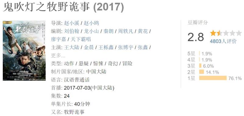 (《鬼吹灯之牧野诡事》豆瓣评分)