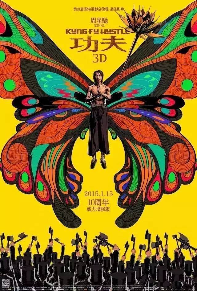 他收藏的有《功夫》珍藏版海报,画面上周星驰托掌而立,背后似乎有一双巨大的蝴蝶翅膀。