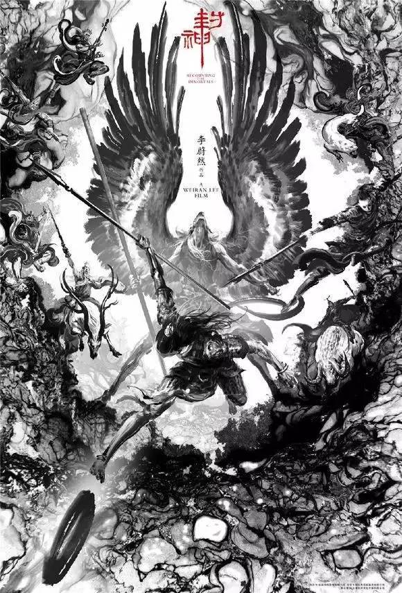 海报将东方古典水墨之诗意与西方魔幻传奇之豪情完美融合,展现出一个巨大的东方天庭。