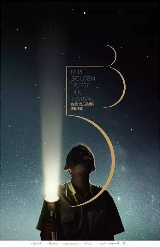 画面中央一个十四岁的小男孩,拿手电筒笔直的照向漆黑的天际,而点点繁星在他身后闪烁,寓意:回看来时,照亮前行。