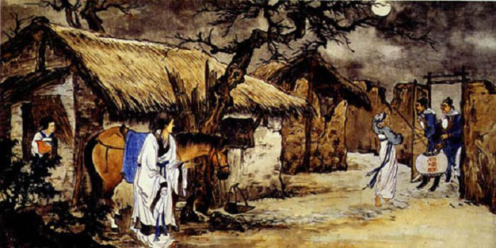 《石壕吏》场景绘画。 图片来源:杜甫草堂博物馆