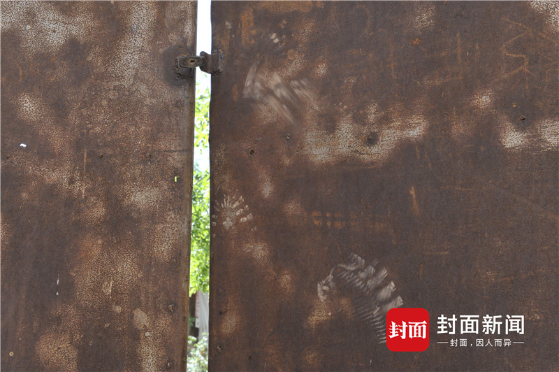 在高承勇老宅处,记者看到大门上门锁已经生锈,这处脚印也特别明显。
