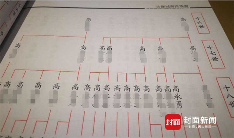 高承勇的老家青城镇,又被称为青城古镇,是兰州市唯一国家级历史文化名镇,这里有着高承勇家的高氏祠堂,在这里提及高承勇名字,祠堂守护人说,“当然,他是一个名人。”“他做错了,理应受到法律的审判。而他姓高,这是不可能改变的事实。所以名字依旧在族谱里,没被逐出。”图为高氏族谱,高承勇的名字在第十八世行列。