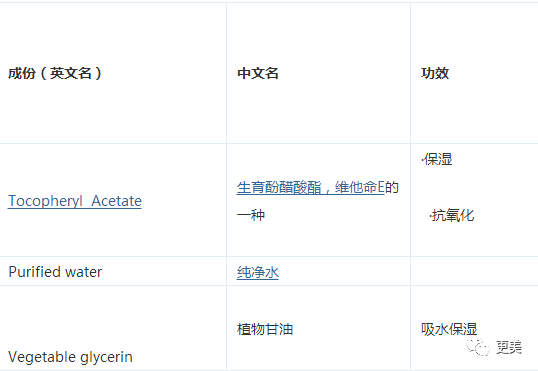 主要成分是水、甘油和生育酚乙酸酯