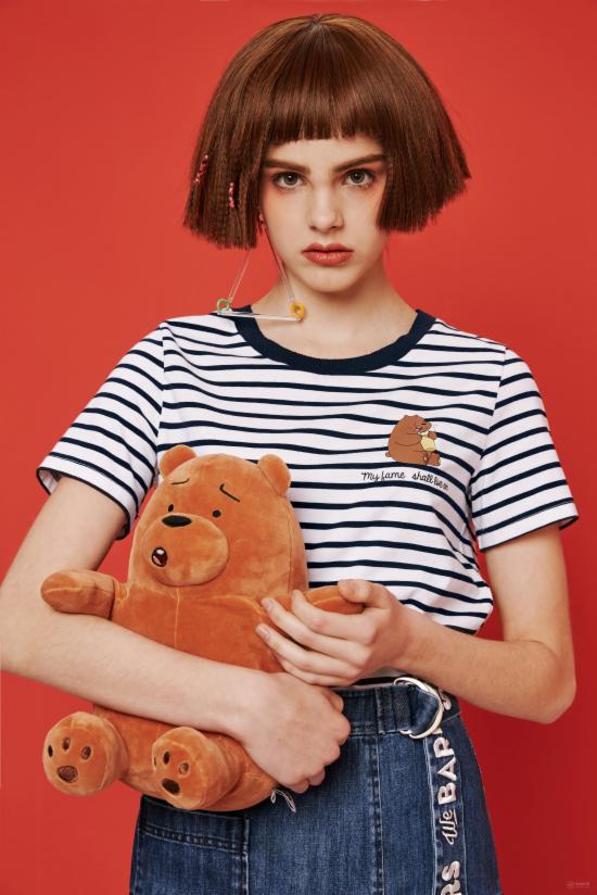 另一个使用这个IP的是同样没那么热门的少女服饰品牌诗凡黎,虽然品牌宣称是对世界有爱的共同理念让它们看对了眼,但尚未被大范围应用,裸熊系列里不断乱入的其他影视剧或许更能充当选择的理由。类似“因为咱们裸熊中出现小美人鱼片段,所以推出相应鱼尾裙“的操作,看上去是品牌一举两得的行为——但问题来了,这要怎么穿出街啊?