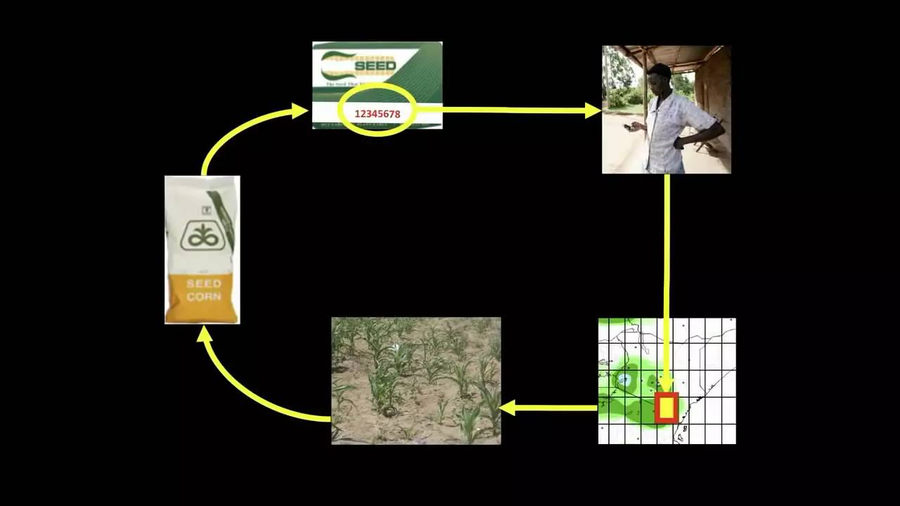 更厉害的是 Kilimo Salama 把这种补种的方法告诉了一家种子公司,并且说服了他们在每包种子的袋上标上保险费用,在每个袋子里都有一张标有数字的卡片,当农民打开这张卡片时,他们会将上面的数字发送给 Kilimo Salama,这个数字将帮助 Kilimo Salama 确定这个农民的位置并且将他们标记到一个卫星像素上,卫星会测量接下来三个星期的降雨,如果没有降雨,就会给他们换种子。