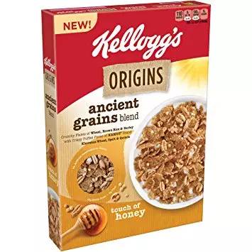 同样是家乐氏旗下产品,Ancient Grains Blend with Touch of Honey是深受甜食消费者喜爱的烘焙类食物,它是由小麦片、红米、各式小麦和藜麦混合而成的蜂蜜杂粮脆片[12]。