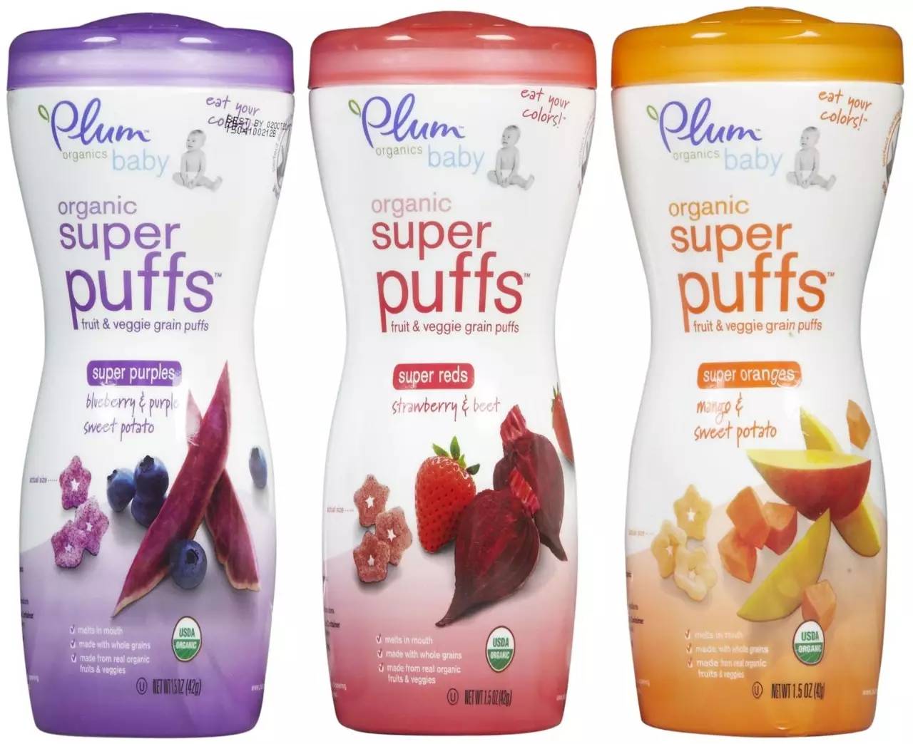 美国谷百 (Plum)食品公司出产的超级有机草莓甜菜星星泡芙专为儿童打造,将甜菜提取物与糯米粉、糙米粉混合烘焙制成,松软容易咀嚼,该公司声称产品不含任何人工化肥、人工添加剂与转基因作物,除甜菜外还具有其他多种口味,深受孩子和家长喜爱。