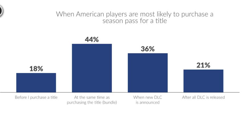 将DLC打包,以优惠价格销售的“季票”模式仍然有大批玩家买单,游戏与季票通常构成了最完整的游戏体验。44%的季票购买者算是冲动消费——他们会在买游戏时顺手把季票买下,因为这样省钱且不用担心落下其他游戏内容。