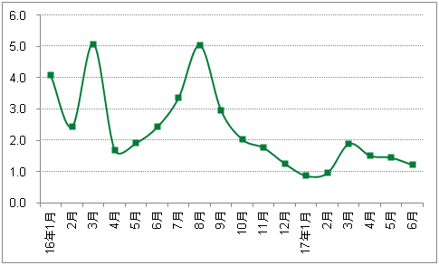 2016年以来上海二手住宅市场月度成交走势(单位:万套)