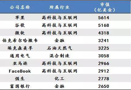 当前企业全球市值TOP10