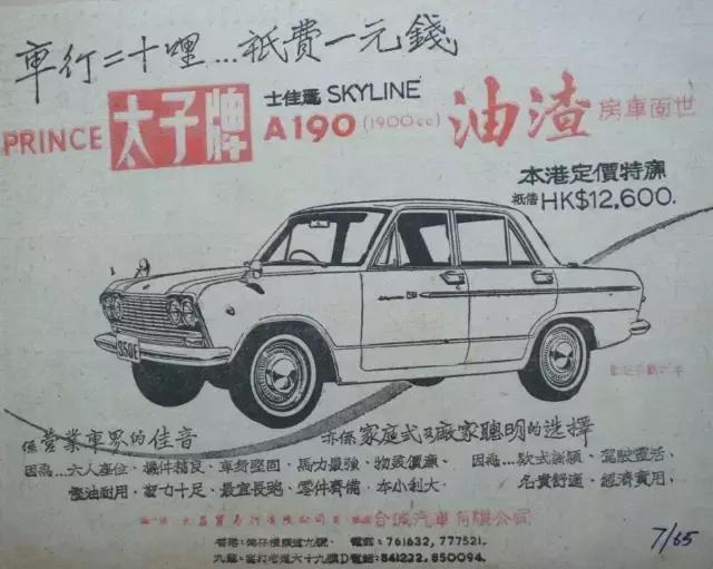 下图中的这款车是PRINECE SKYLINE(香港称太子牌 士佳丽),这款车大概是六零年代左右生产的。这里有必要先介绍一下香港当时的社会环境。那时香港正是人口突增的年代,整个社会基本还处在解决温饱的阶段。但这个时候也是香港贸易开始迅速发展的阶段,由于维多利亚港口优越的自然条件,促进了当时货运业的发展。并且基本免受关税、出入手续也非常方便。这款PRINECE SKYLINE车型就是当时从日本进口过来的。那时的物价茶餐厅的猪扒包要1蚊8毫一个,文员的月收入大概100港币。