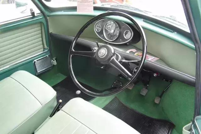 图中的这款A55 COUNTRYMAN被称为旅行版,虽然叫COUNTRYMAN但是和现在的MINI COUNTRYMAN是两码事。它搭载了一台1.5升B系列发动机,每英里加仑燃油消耗量为31.6英里(8.9l/ 100公里)。室内装饰有独立的皮革修剪座椅,变速器是在立柱上或地板上安装。它的尾门可以双向式开启,非常实用。
