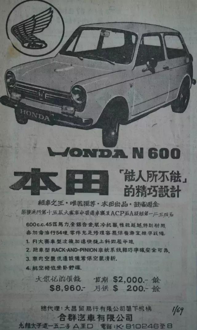 HONDA N 600是本田生产的第三台轿车,一看它的slogn就很霸气“小车之王·唯我独尊”,放在现在的广告法早就被人干掉了。本田粉门对这款车有了解吗?它可比GK5还厉害。包揽第十五届澳门大赛车某组别的前四名,足以证明它的实力。