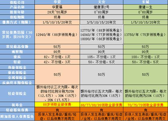 天安-健康源2号、长城-康健人生、华夏-华夏福。