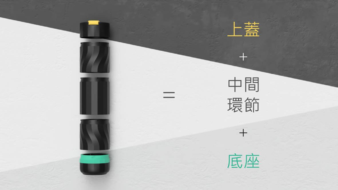 专利卡榫是采用螺纹与卡榫的混合型态。这个短螺纹的设计结合了卡榫的优点,在卡榫末端设计了触觉回馈,这个回馈能够让使用者知道水壶已经组装完成,并且能达到不漏水。