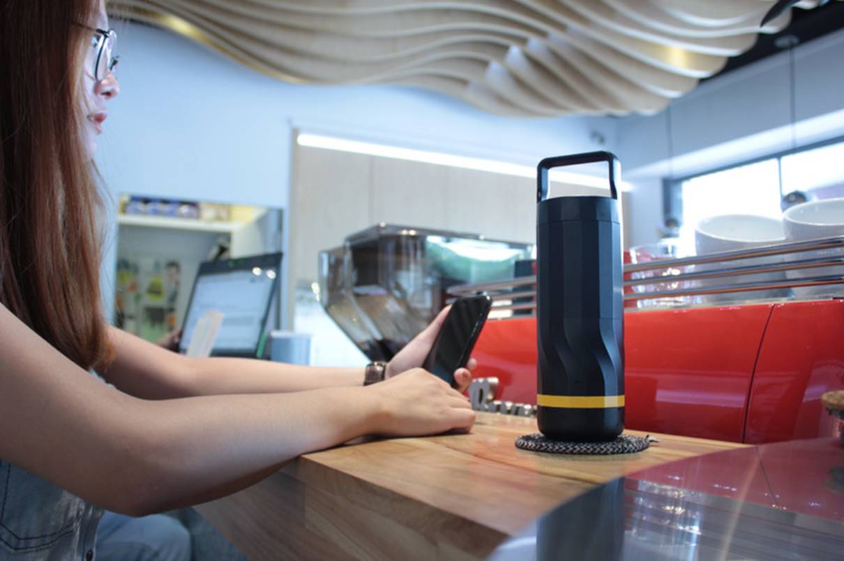 智慧底座。透过内建传感器,精准测量您的饮水量,并利用低功耗蓝牙将数据传输至手机 APP 显示。