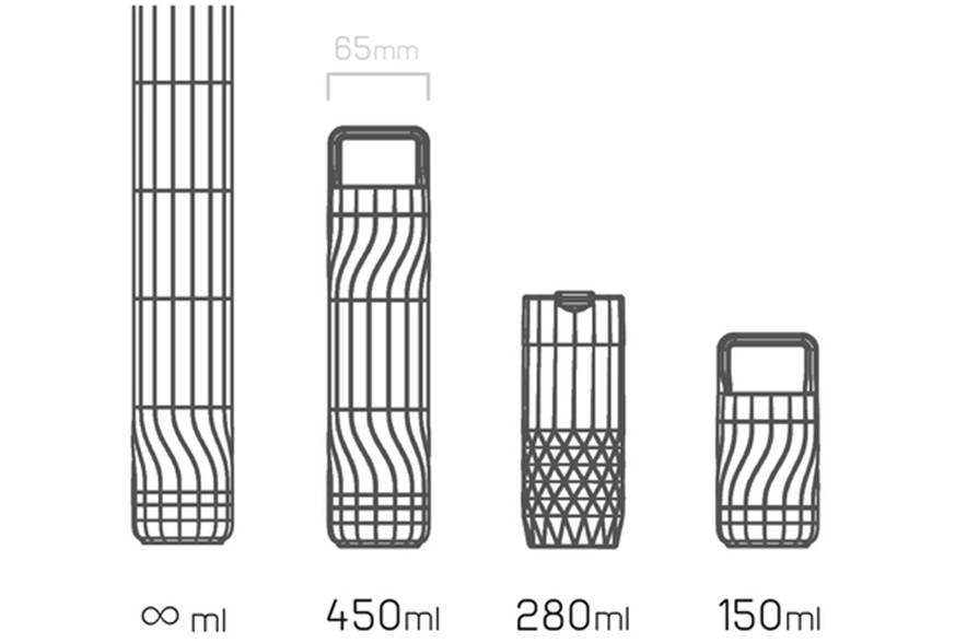 通过中间环节的数量增减,可以调整携带的水量多寡,还能搭配不同外观与颜色,形成独一无二的个性化水壶。