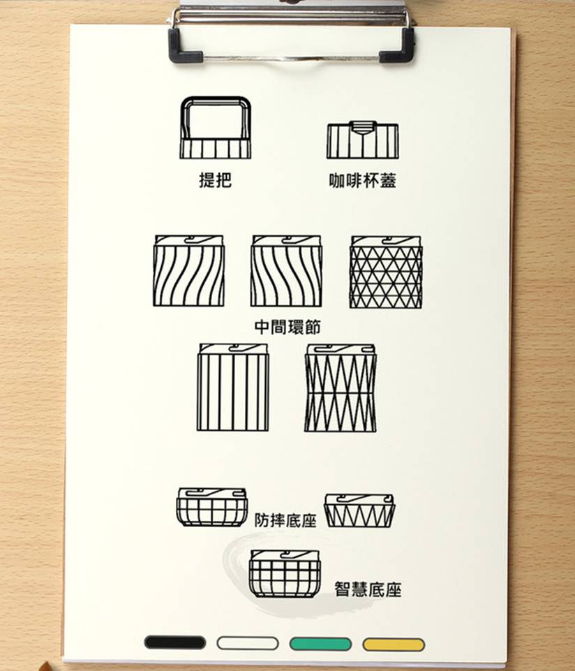 四种配色(黑、白、绿、黄)任你搭配,据说一套水壶就有超过 1,000,000种的组合方式。