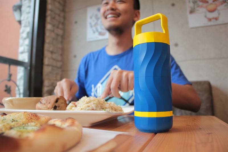 这是一个台湾团队。2015 夏天,团队成员之一 Thomas Wang在美国交换,一直有一个困扰:健身粉总是在卡在水壶内,很难清洗,易造成细菌滋生和异味残留;此外,水壶的容量与外观也没办法随时调整。