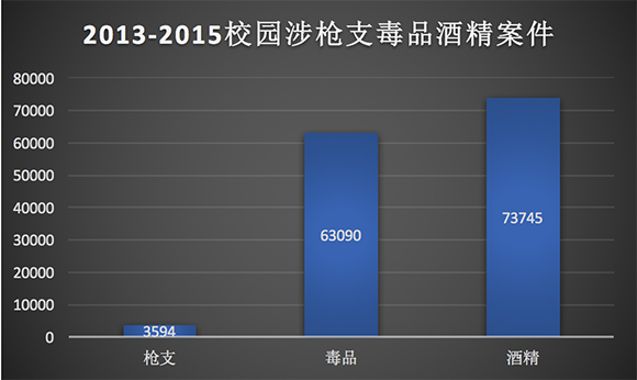然而枪支并不是校园安全的最大隐患。数据显示,2013-2015全美校园涉及枪支,毒品和酒精的案件高达14万多起,其中酒精犯罪就占到一半以上。