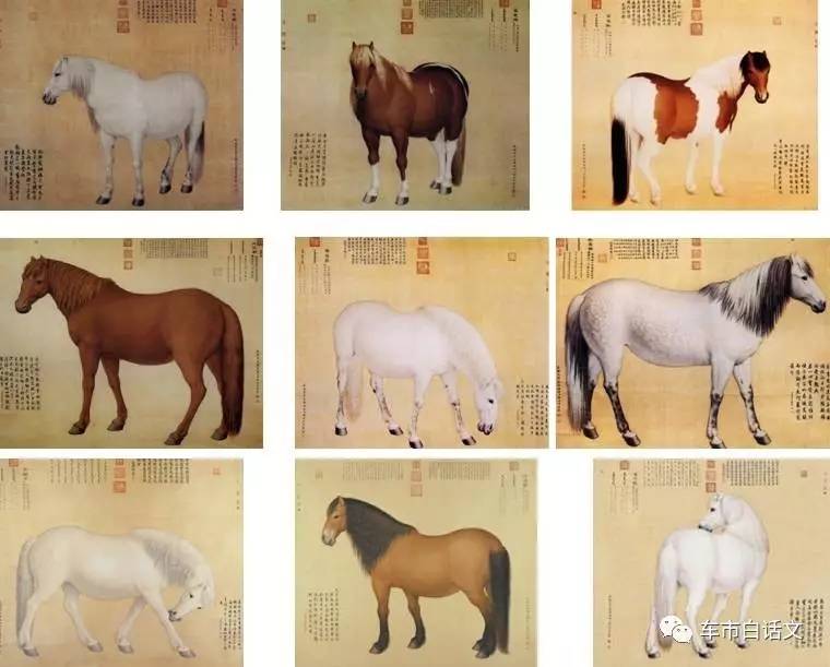 清代著名画家郎世宁是意大利人,他擅长画人物肖像、鸟兽、山水及历史事件,尤精画马。1700年,蒙古外藩向清廷进贡骏马,乾隆皇帝请郎世宁以此为题绘制《十骏图》,十骏分别为万吉骦、阚虎骝、狮子玉、霹雳骧、雪点雕、自在驈、奔霄骢、赤花鹰、英骥子、薾云驶。十匹马花色不同、形态各异。