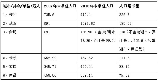 第3、4的合肥、长沙其实差不多,都是增长了110多万人。