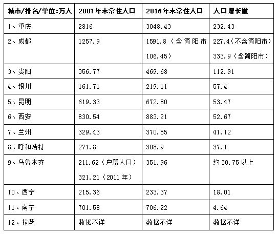 多说一句,南宁那么好的位置,表现似乎不够好。金融危机后这么多年,常住人口增长不到5万人,很可能是西部倒数第一。拉萨缺数据。