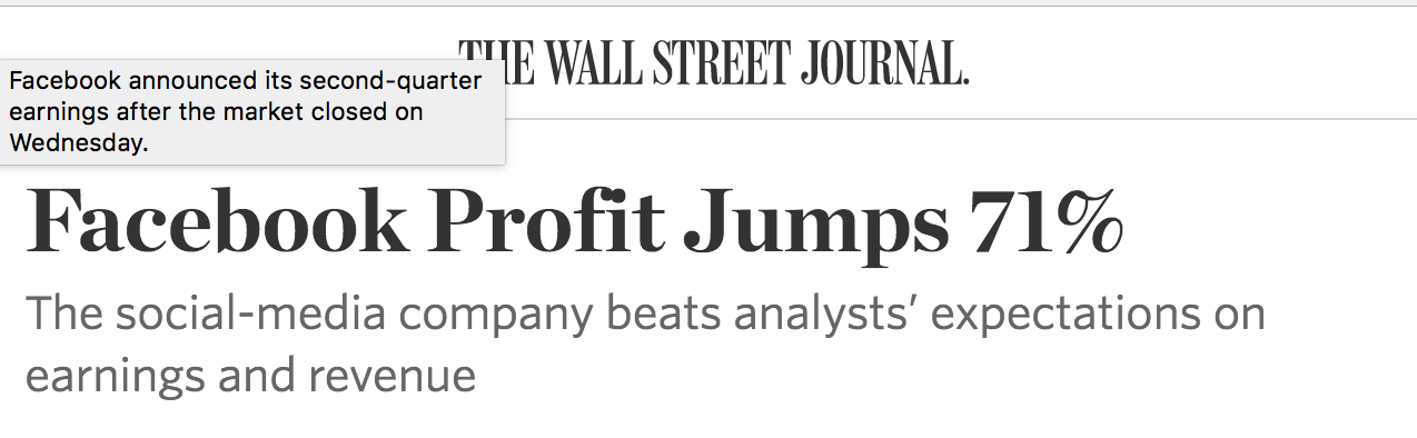 【Facebook二季度净利润上升71%】社交网络巨头Facebook周三发布第二季度财报,显示其净利润上升71%,主要来自于广告业务的扩大。