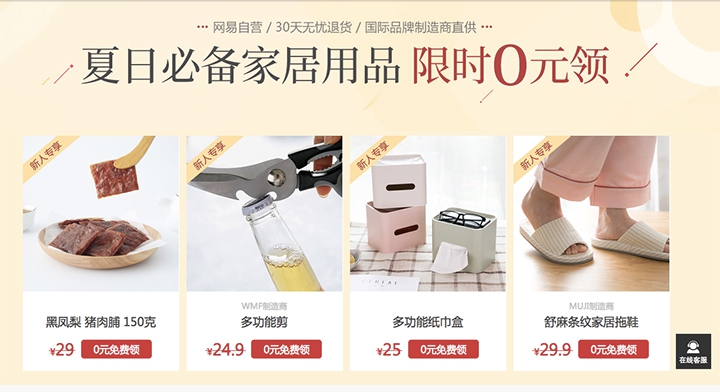 我们试着在网易严选上注册了一个新账号,但注册成功后,我们并未在账户里找到新人券。经过一番查找,我们终于发现了这个“新人专享”页面(http://you.163.com/act/pub/u4VwGLt8Jg.html),上面所列举的一系列“0 元领”或者“包邮”产品,正是近期频频出现在朋友圈的“爆款”。
