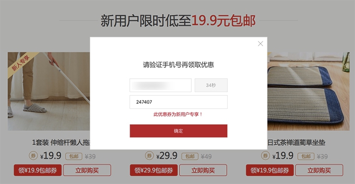 既然如此,我们自己不断注册小号不就可以无限制地使用这些优惠了?理论上是可以的,前提是你得有无限的手机号码,因为领券的时候需要验证手机号,而一旦领过券,这个手机号即使绑定到其他账号,也无法再享受新人优惠了,这点漏洞网易还是考虑到了。