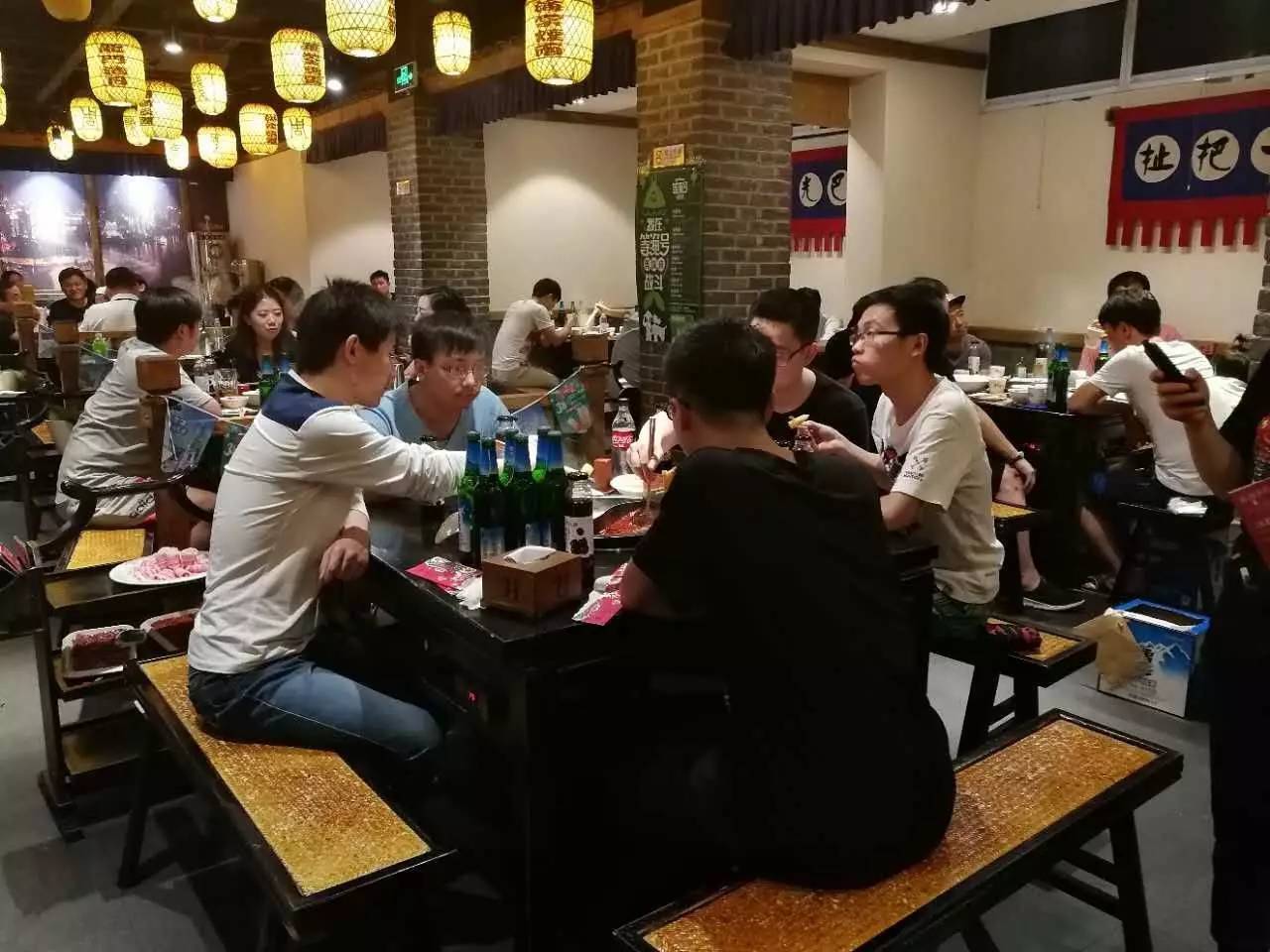 在井格的门店里,可以看到每桌客人的面前都放着很多的啤酒、酸梅汤。顾客一边烫火锅,一边喝酒聊天,氛围好不热闹。