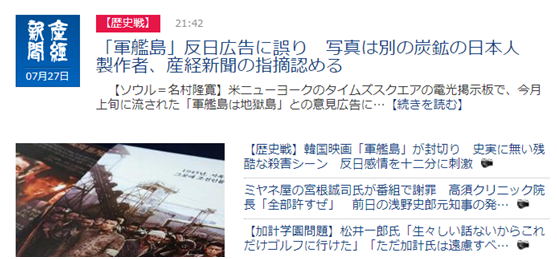 长15秒的宣传片《军舰岛的真相》从本月3日开始在时报广场播放。然而,日本《产经新闻》日前爆出,片中有部分照片并非军舰岛上的朝鲜劳工,而是明治时期福冈县的日本矿工。