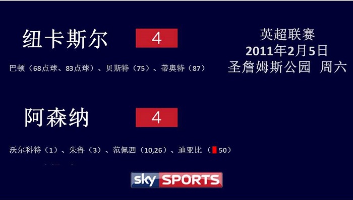 - 2012/2013 曼联VS纽卡斯尔:4-3(1-2)