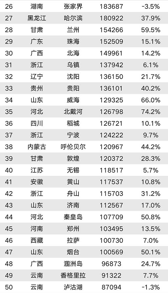 境内旅游目的地:避暑胜地与海边城市热度暴涨