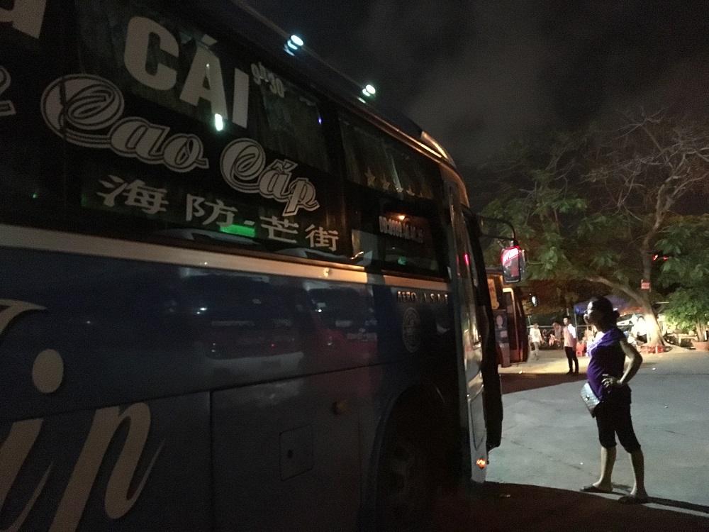 一行人不做休整,直接打车到汽车站。虽然天色已黑,但是在汽车站内,仍有大量去中越边境芒街的大巴。