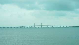 通车后的港珠澳大桥将是世界上最长的跨海大桥。连接香港大屿山、澳门半岛和广东省珠海市,全长为55公里。